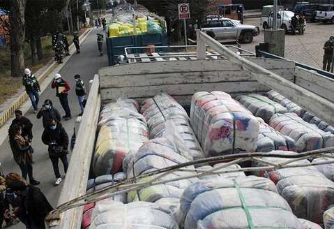 «Así mismo, en estos periodos se comisaba un valor entre 3 y 4 millones, nosotros vamos hasta la fecha 9 millones de comisos en ropa usada. Entonces, podrán ver que nuestras cifras están sobrepasando nuestras propias cifras del 2021», resaltó Serrudo en conferencia de prensa.